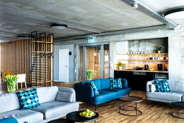 Großer Kursraum und großzügiger Seminar- und Loungebereich inkl. Getränkeangebot